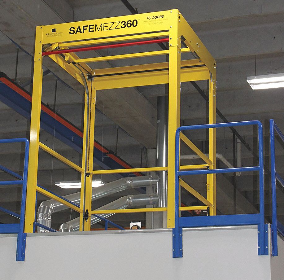 Safety Gate Mezzanine. All gate styles help you safely move pallets, skids, containers and other loads on and off your mezzanine. It features counterbalanced lift gates that ensure one gate is always between your employees and the leading edge, and allows for the loading and unloading of taller pallets. Choose from pivoting or clear height. the horizontal mezzanine safety gate offers mezzanine fall protection safety for your employees, while allowing access for. mezzanine safety gates come in several designs. These mezzanine gates feature a counterbalanced, pivoting safety gate system that continuously keeps one gate between your employees and the mezzanine’s leading edge. kee pivot® mezzanine safety gate is designed to provide safe access for factory and warehouse workers who are responsible for. fabenco offers mezzanine gates that comply with osha standards for mezzanines and elevated pallet storage areas. pallet drop safety gates for osha fall protection on elevated work platforms, lifts and loading docks in material handling,.